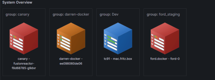 The servers are represented by intuitive, color-coded cubes, instantly conveying their current status: